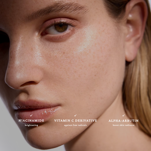 Serum dengan teknologi Exosome serta kandungan aktif vitamin C, Alpha Arbutin dan Niacinamide.