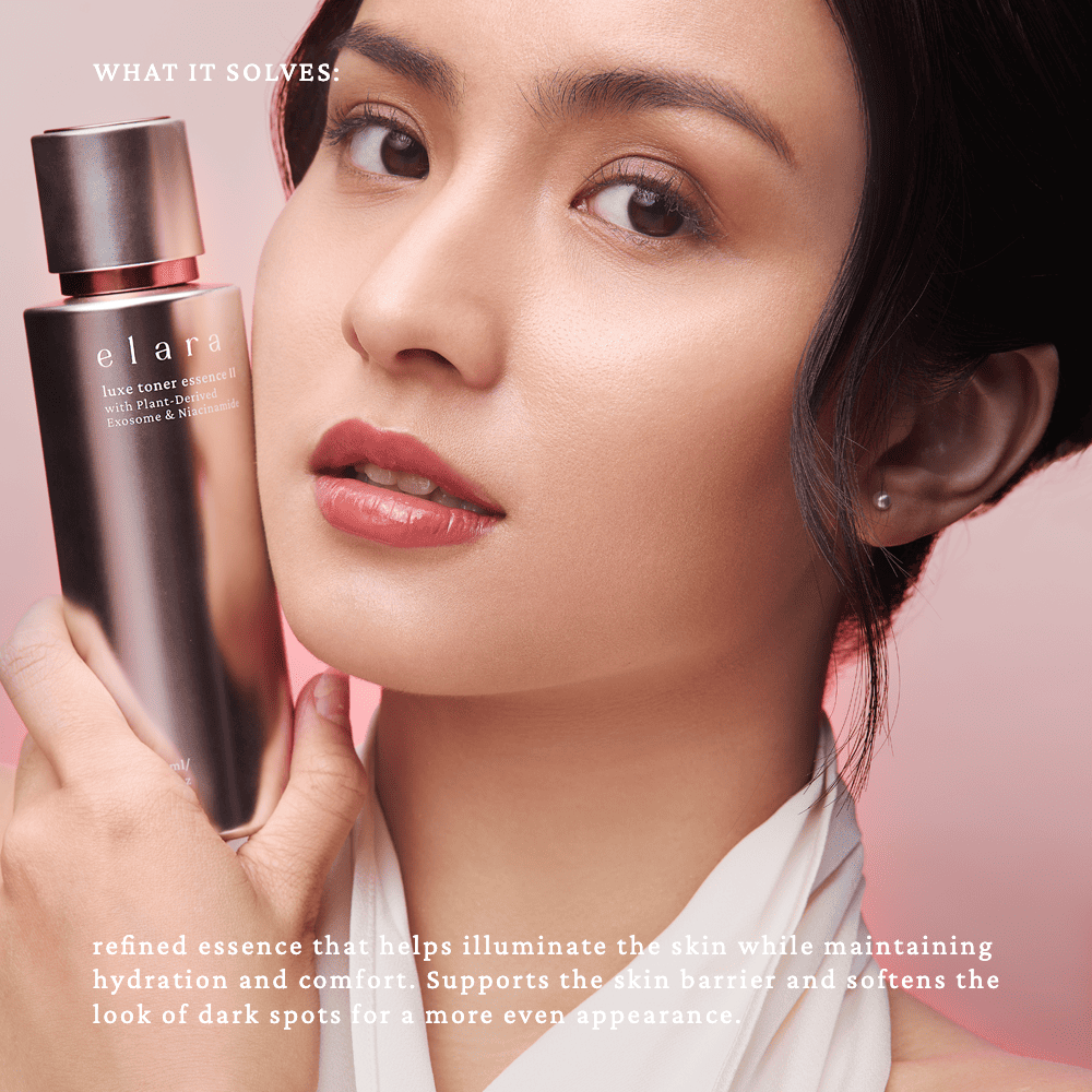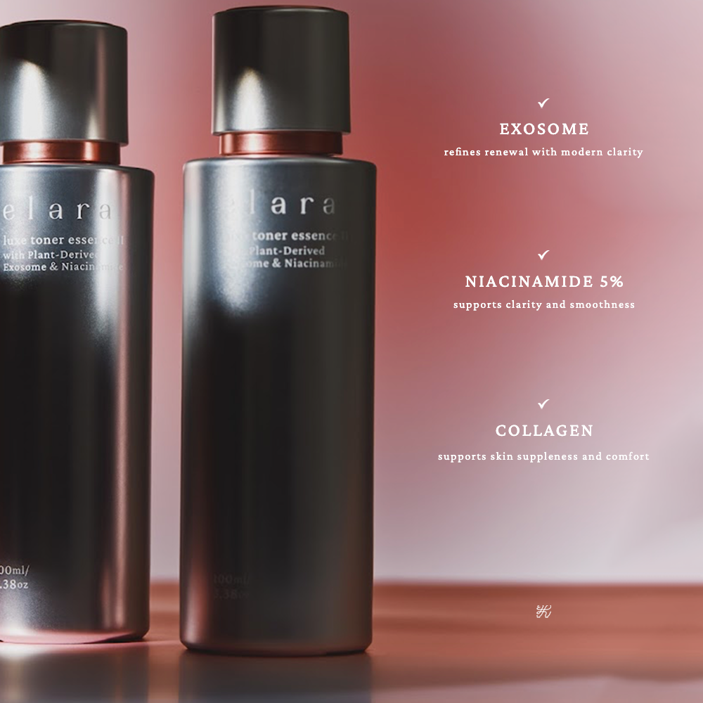 ELARA Luxe Toner Essence II merupakan soothing + repairing serum yang diformulasikan untuk kulit sensitif, acne-prone, dan barrier rusak, dengan kombinasi Cica Stem Cell + Ceramide Complex + Multi-Peptide Anti-Aging + BHA.