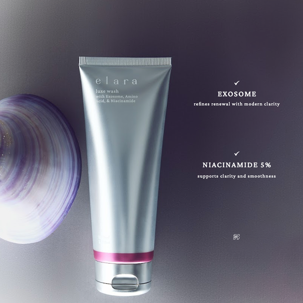 ELARA Luxe Wash dapat membersihkan sisa kotoran/debu dan sisa make-up yang menempel pada kulit wajah. Diperkaya dengan Exosome Plant, Amino acid, Niacinamide, Pantenol, Salicylic acid, dan Sodium Hyaluronate yang dapat membantu merawat kulit berjerawat, merawat skin barrier, dan membuat kulit tampak lebih segar dan cerah.